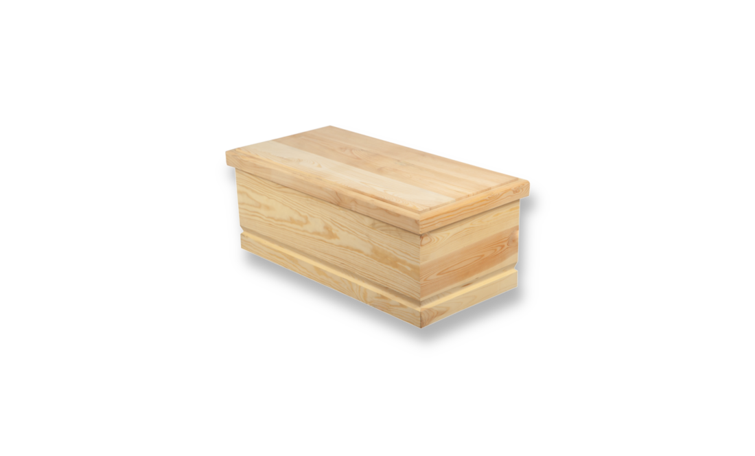 Der “70-Exhumierung” Kiefernsarg ist aus reifem Kiefernholz gefertigt. Geeignet für die Einäscherung. Der Sarg ist mit mattem Lack überzogen.