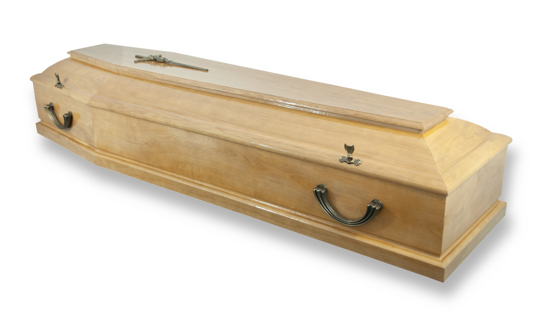 Der “Dänische helle” Eichensarg ist aus getrocknetem Eichenholz hergestellt. Das Platzieren von Brettern entlang des Sargbodens garantiert eine hohe Festigkeit und Dichtheit. Die maximale Tragfähigkeit des Sarges beträgt 160 kg. Der Sarg kann mit Matt- oder Glanzlack überzogen werden.